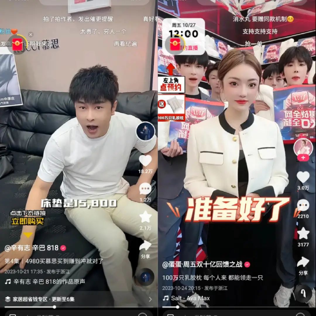 辛巴在10月21日“抢跑”,开启爆品清单大促直播,首战的一款慕思真皮床单品销售额超过10亿元。辛巴的下一场直播定于10月28日,截至发稿前,已经有超过73万人预约。