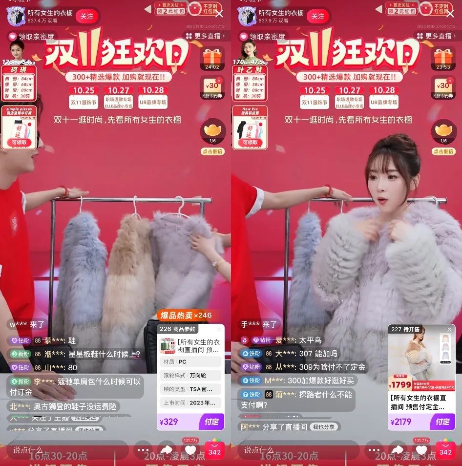 同时,自618之后,美ONE也在双十一延续了李佳琦和“所有女生”、“所有女生的衣橱”两个助播直播间共同参与大促的策略安排。