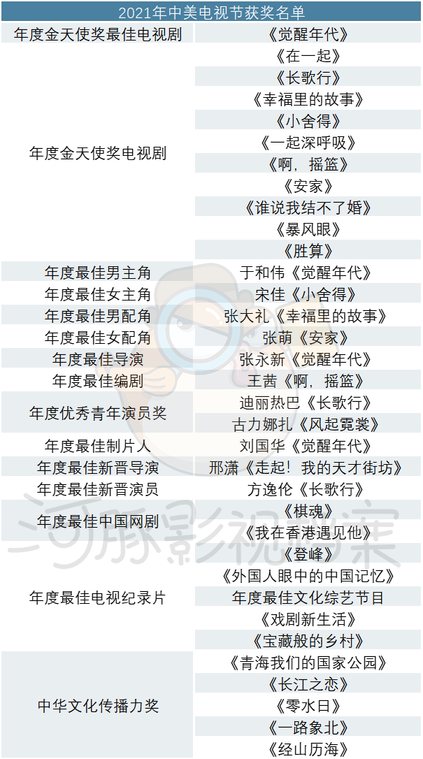 评奖结果清一色的国产剧集,作品质量都很不错,但中美两字已然成为噱头,实则还是在国内电视剧之中进行评选。