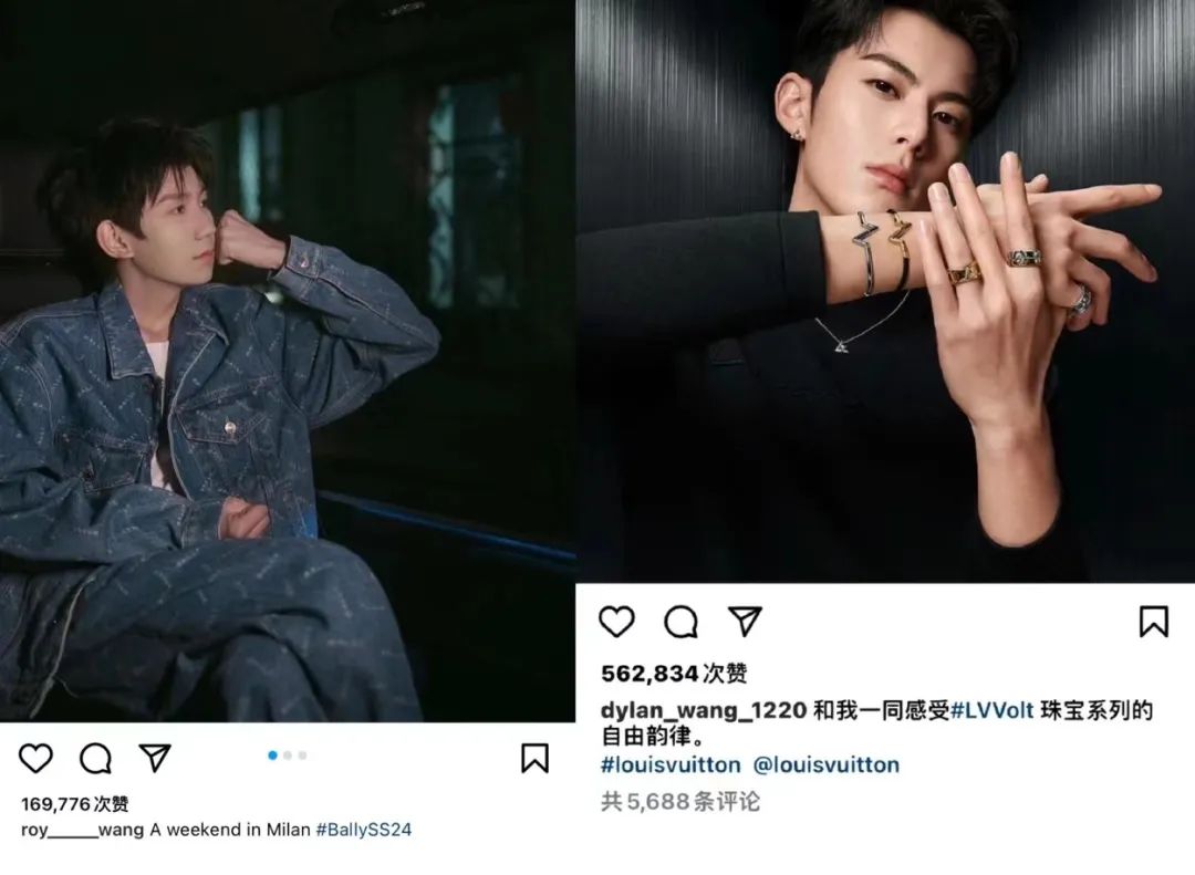 王源、王鹤棣在ins上与BALLY、LV的互动
