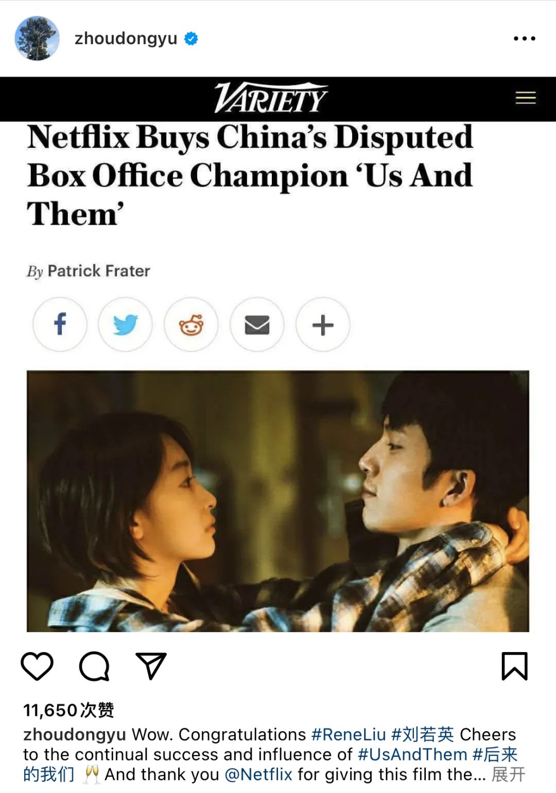 周冬雨在ins上宣传《后来的我们》