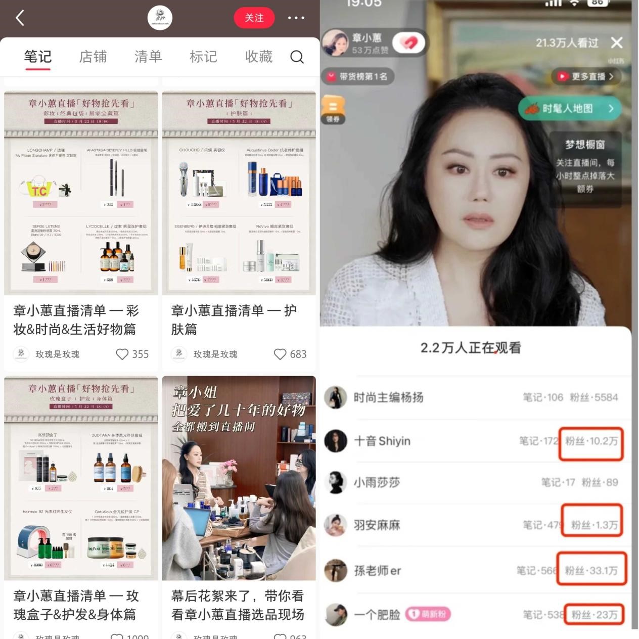今年1月,董洁在小红书首场直播,GMV超300万,第二场直播成交总额超3000万,第三场GMV为6000万;5月,章小蕙在小红书直播首秀时,销售额超5000万,第二次单场销售额超过1亿元,翻了一倍。