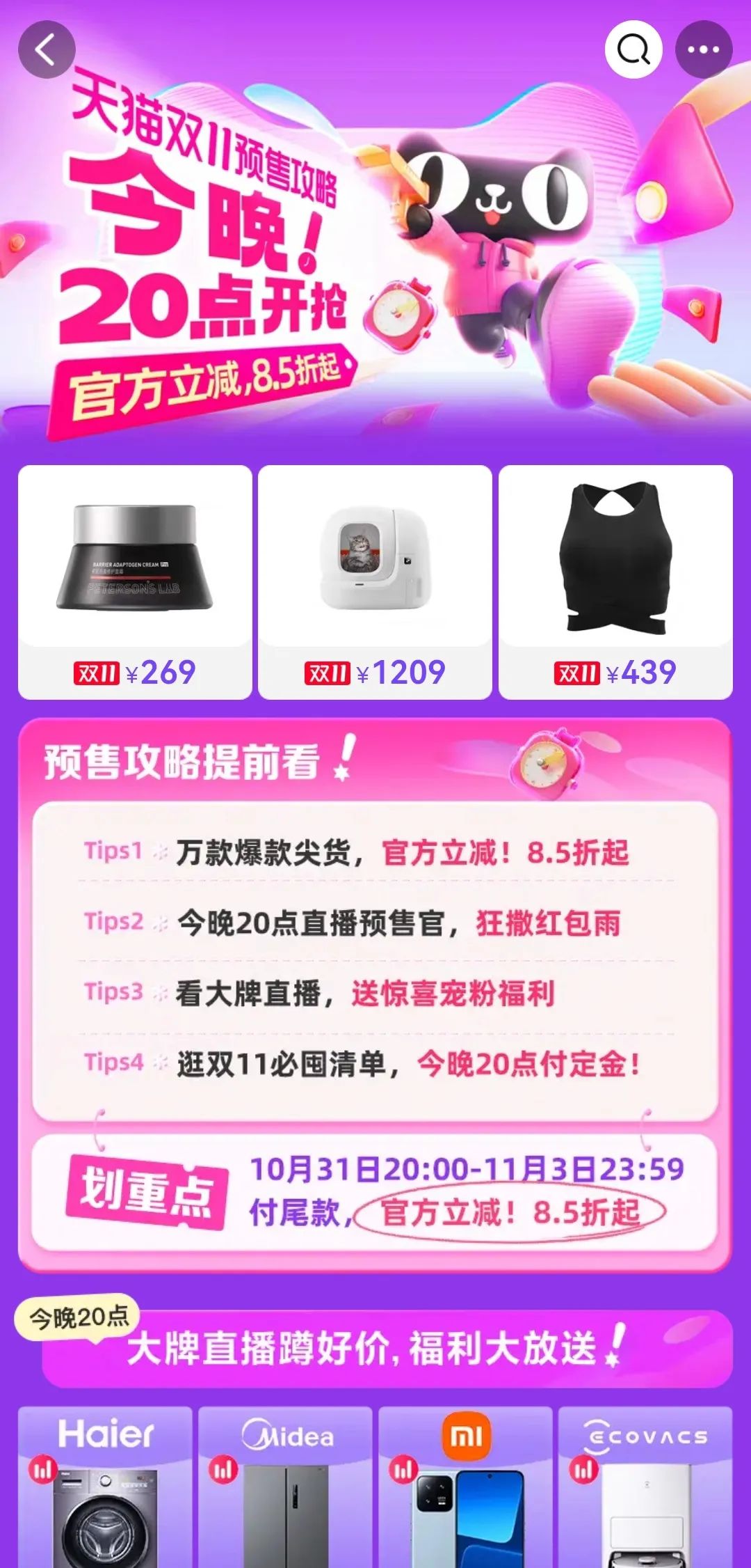 一年一度的双11来临,快手电商已于10月18日打响头阵,20日抖音电商、京东紧随其后,天猫也于24日开启双11预售,今年淘宝双11取消预售期,10月31日20点准时开始。