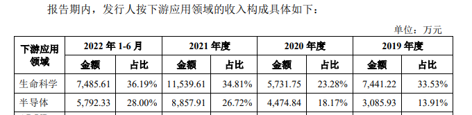 目前,茂莱光学半导体光学属性日益凸显,半导体领域收入已超越生命科学成为公司成长最快规模最大的业务领域。根据此前招股书,2019年至2021年及2022年上半年,半导体领域收入占比从13.91%增长至28%,生命科学领域收入占比略有波动,除2020年外,维持在30%以上。