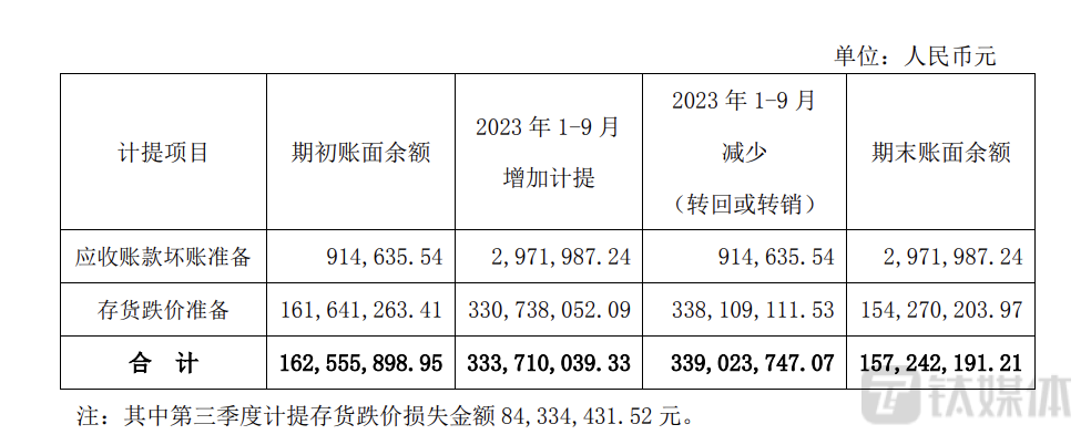 钛媒体APP注意到,计提减值损失是导致江波龙亏损的主要原因之一。今年前三个季度,江波龙共计提各项减值损失共计3.33亿元。其中,公司计提存货跌价准备3.31亿元,同比增加100.04%。![]()