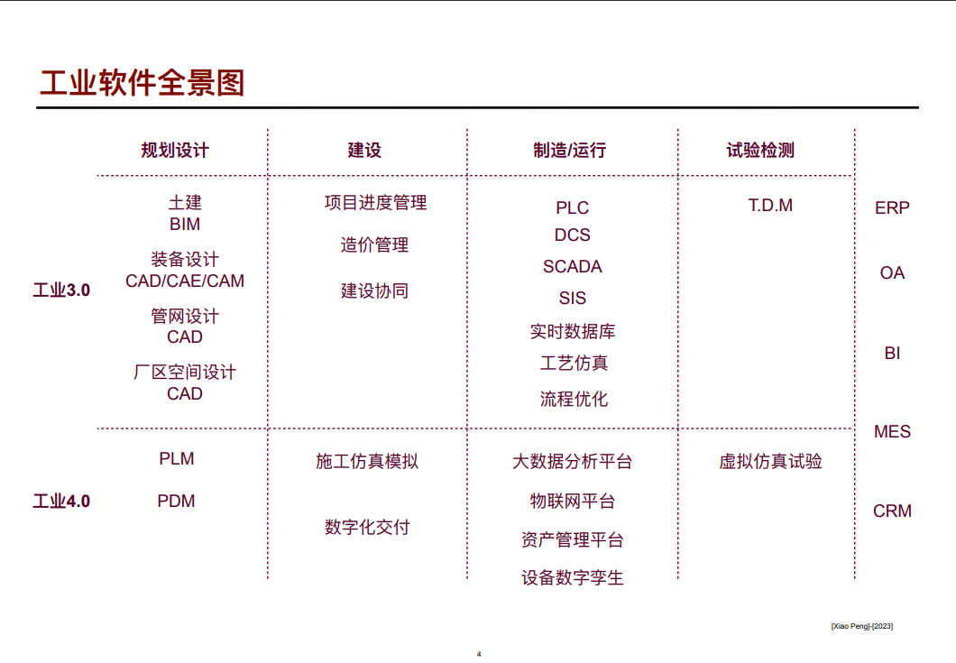 根据大型装备和流程工业这两个主要领域,我们可以将工业软件划分为四个主要类别: