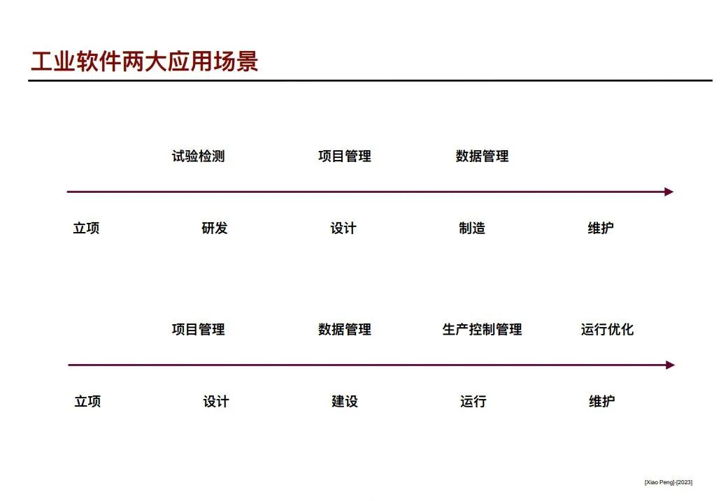 为什么要这样划分呢?举例来说,像西门子、海克斯康等软件企业,当他们进入中国市场时,会出现一个有趣的现象:工具类软件非常畅销,如CAD、CAE、鹰图。然而,与之相反,项目管理、数据管理以及生产管理的软件销售相对较差。中国在大型装备和流程工业的组织方面借鉴了海外的经验,但在管理形式上更多地参考了苏联的模式。因此,我们的管理形式与欧美大不相同,但我们使用的工具却几乎一致。这造成了一个奇怪的情况,即海外的许多软件品类,在中国被认为非常有价值,代表着管理和组织形式的一部分,类似于企业服务中的行业或最佳实践,但这一部分在中国销售并不太好。然而,设计研发类的软件,不论是EDA、CAD还是CAE,以及CAM,都在国内销售非常好。这反映了中国特殊的情况,导致了这种现象。从现在来看,我们上市的工业软件相关企业都以研发设计工具类软件为主,而生产管理和数据管理的软件相对较少。