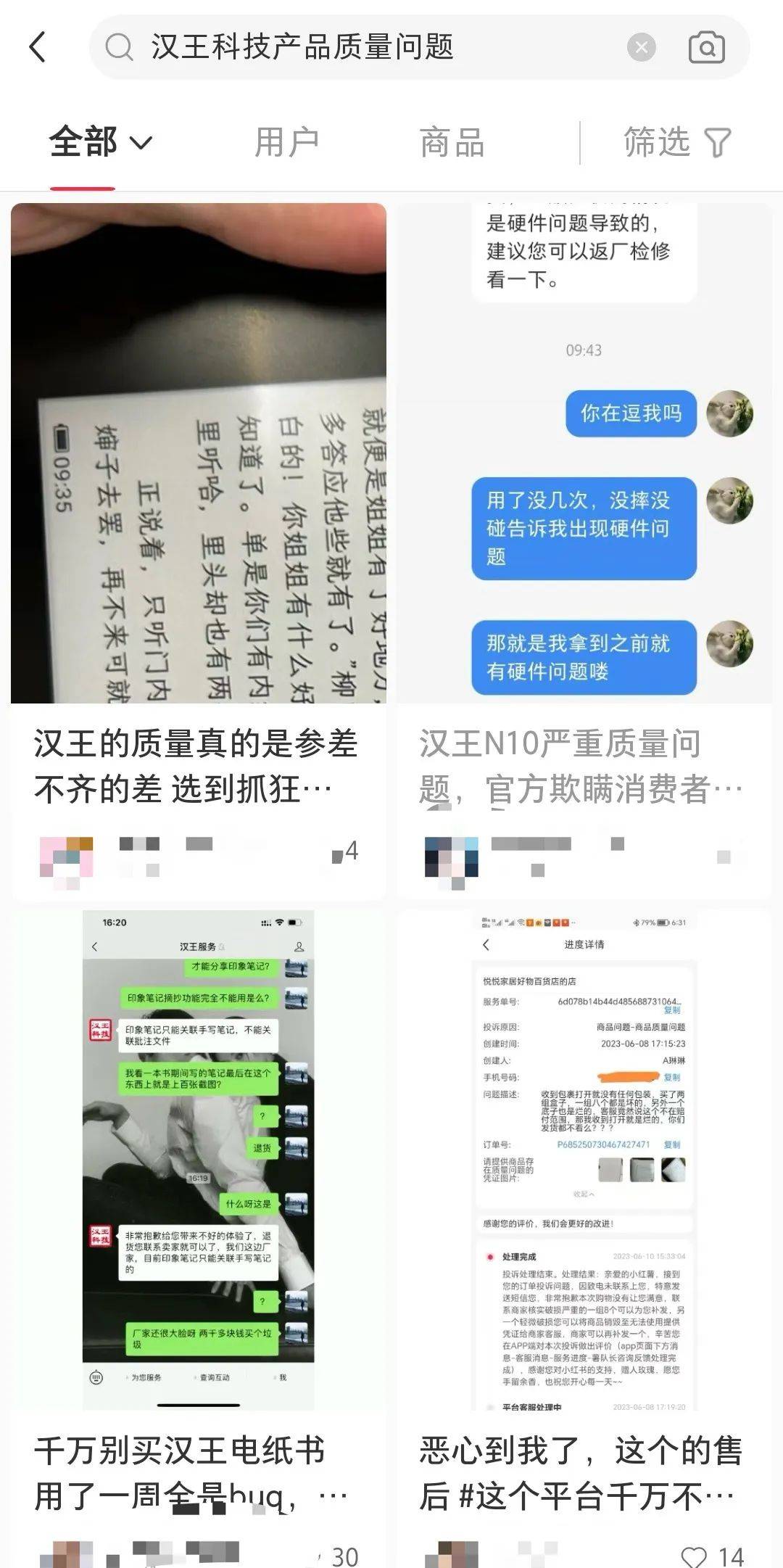 记者还在小红书、天猫、京东等平台上发现关于汉王科技产品的其它投诉信息,在产品性能及设计上还需进一步优化。