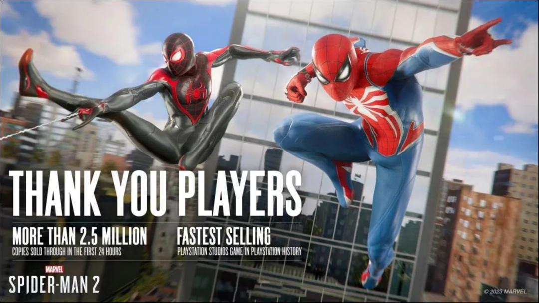 去年5月,Insomniac Games公布系列销量超过3300万份。2代发售24小时内,销量即超250万份,刷新了索尼旗下第一方作品的销售速度纪录。结合其出色口碑,《漫威蜘蛛侠2》的商业成绩也还有很大想象空间。