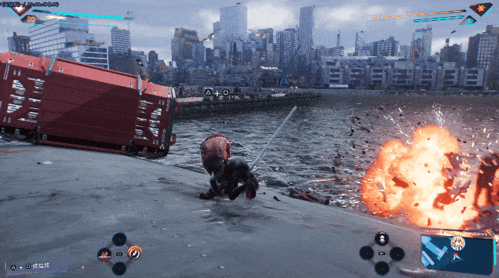 战斗方面,2代用简单的新增机制让游玩体验变得更为爽快。彼得·帕克变得像《蜘蛛侠:迈尔斯》里的“小黑蛛”一样拥有战技,通过“L1+4功能键”的组合就能快速释放,使用道具也无需像前作那样调出轮盘选择,被快捷绑定到了“R1+4功能键”上。玩家上手的效果堪称“任凭敌人如潮,反正有啥按啥”,技能、道具、大招的冷却循环,本身就能带来特效满屏、眼花缭乱的战斗快感。