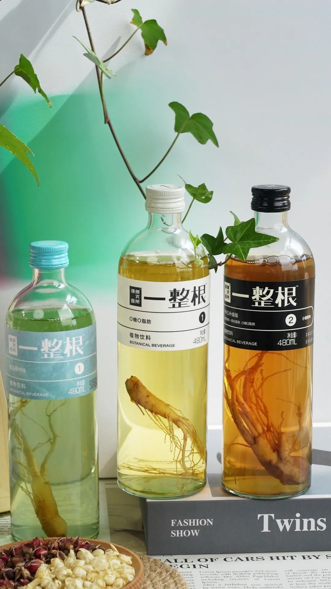 一整根人参水通过将产品可视化,让消费者直接感受到“货真价实、所见即所得”的品牌体验。通过全透明瓶身呈现一整根人参原生态材料,加上大部分人对“人参”的认知是“滋补、养生”,这种做法直观简单地传递出产品的高价值感。