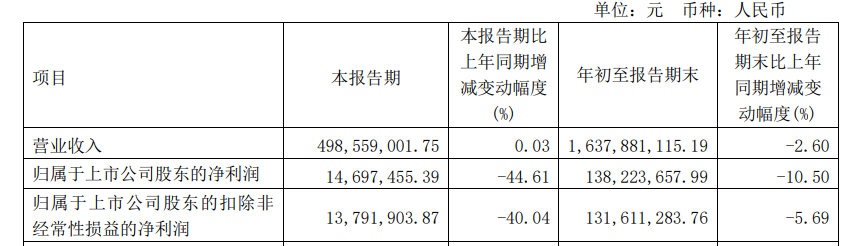 前三季度,恒顺醋业实现的营业收入约16.38亿元,同比下降2.6%,降幅较半年报有所收窄;对应归母净利润约1.38亿元,同比下降10.5%;期间扣非后净利润约1.32亿元,同比下降5.69%,利润端降幅进一步扩大。
