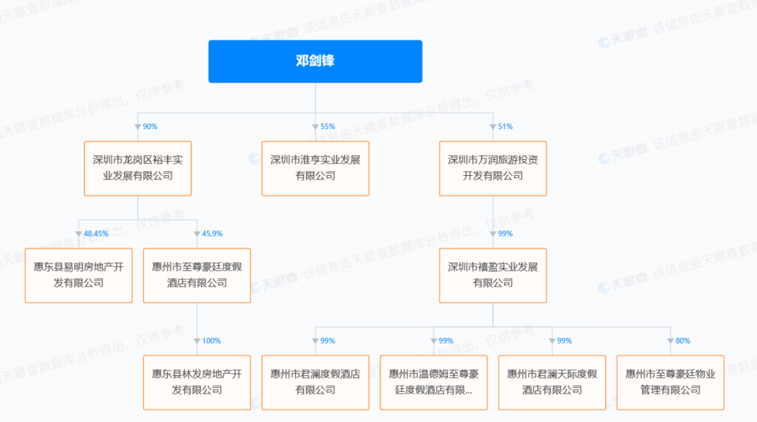 追根溯源会发现,无论是惠州温德姆至尊豪廷,还是惠东林发房地产,实际控制人都为邓剑锋。而他们的问题只是冰山一角,背后更多错综复杂的连带关系和债务问题逐渐浮出水面。