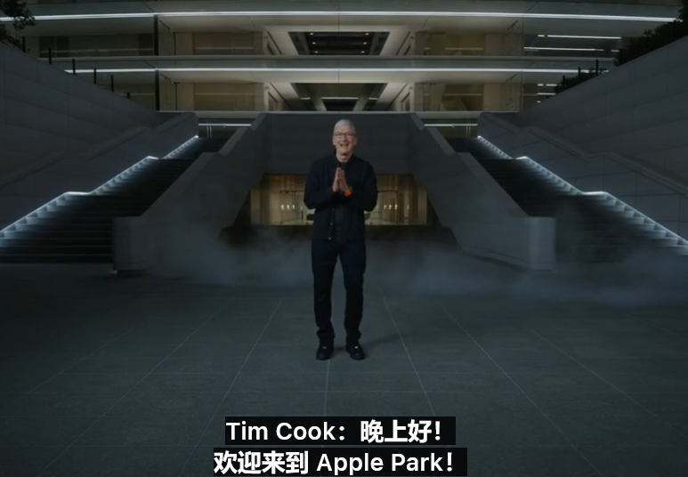 苹果将这场发布会戏称为万圣节派对,名曰“快得吓人(Scary Fast)”。CEO蒂姆·库克(Tim Cook)在黑漆漆的夜晚穿过雾气走来,气氛烘托得很到位。没有熟悉的“早晨好”,库克向大家道“晚上好”,开启了这场发布会。
