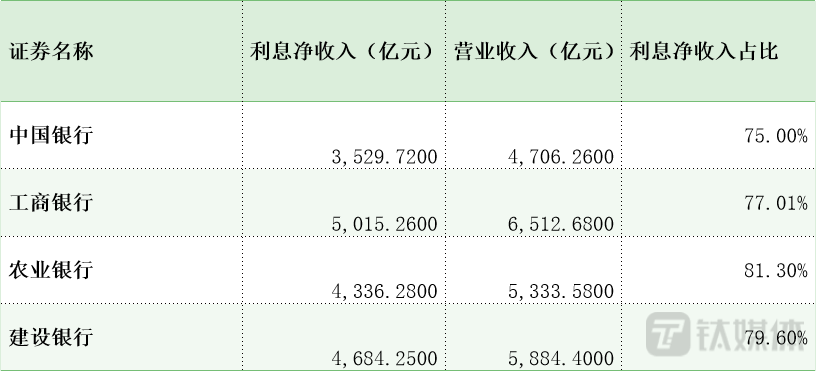 对比四大行可以发现,三季度中行利息净收入占总营收的比重为75%,在四大行里占比最低,因此,在存贷款利率下调,LPR下调、市场利率整体下行的背景下,利息收入占比最低的中行受影响最小。