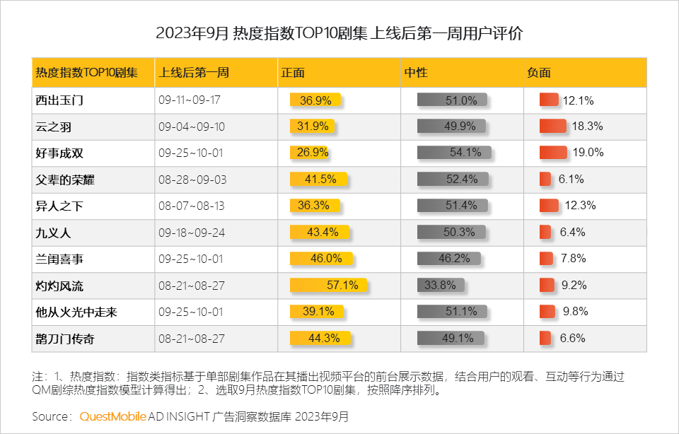 Ⅲ. 各平台发力高质量的内容,以激发更高的用户付费意愿,热播剧集上线后用户负面评价均在两成以下