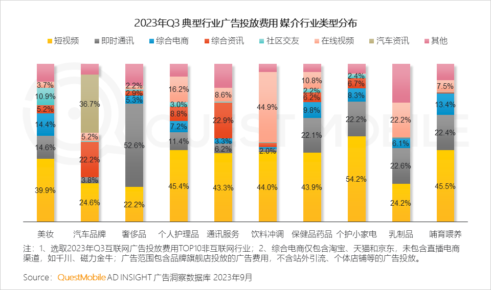 Ⅰ. 穿类、用类、家电等消费品类线上化程度更高,吃类的刚需性、新能源汽车的发展、IT电子的智能化,助力线上消费增长,增强相应品类广告主营销信心,提升对应品类的广告投放