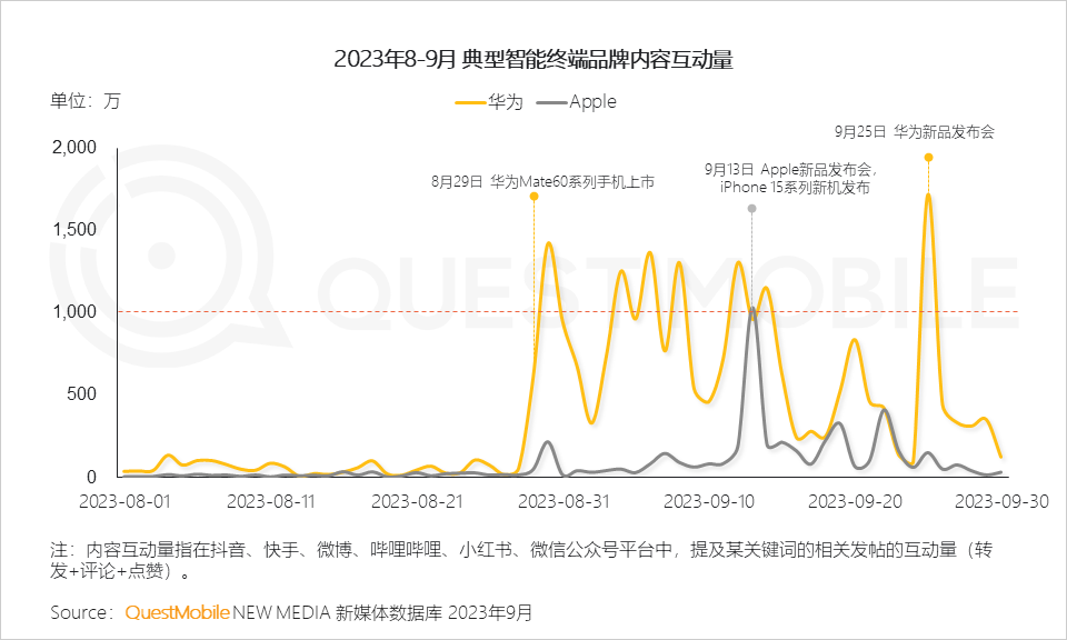 3.2 热门新机型的上市引发消费市场关注,华为Mate60系列、iPhone 15系列新机内容互动量均超千万