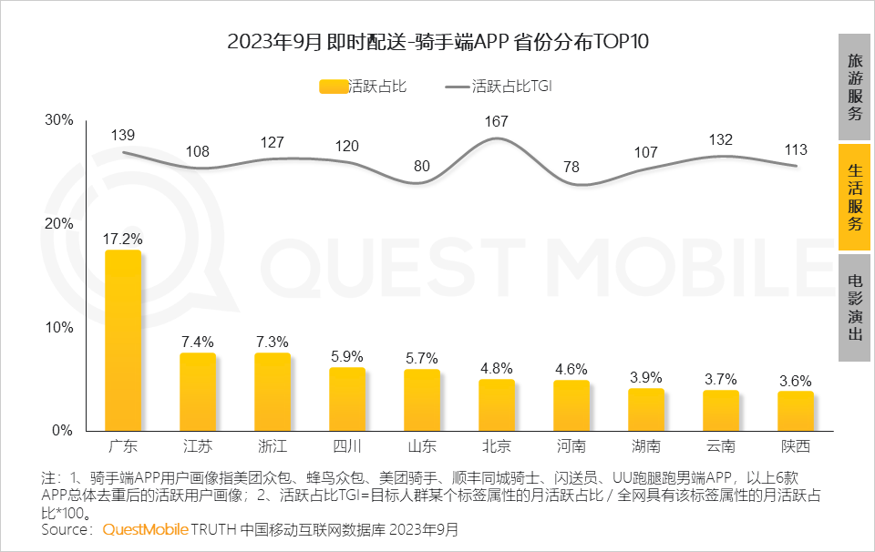 2.7 从送外卖到送万物,即时配送成为满足用户快节奏生活的“助推器”,广东、江苏、浙江等南方沿海地区为即时配送骑手端主要活跃的省份