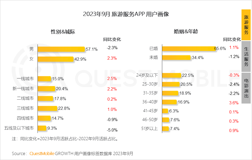 2.2 居住三线及以上城市、已婚女性、36岁以上中老年群体比例同比提升,亲子、家庭成为暑期旅游重要群体
