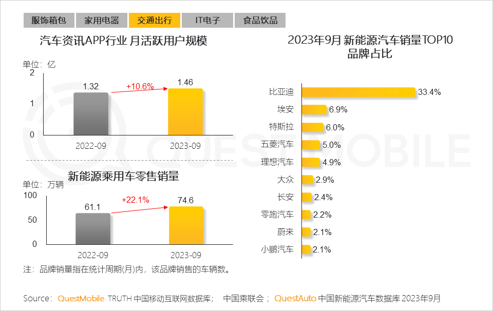 QuestMobile数据显示,2023年9月,途虎养车与零跑APP的重合用户规模同比提升13.7%,京东养车与Tesla APP重合用户规模同比增长翻倍,养车APP与新能源汽车品牌的协作可满足车主的用车养车需求。
