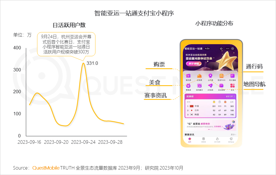 4.2 “数字+赛事”成为杭州亚运会的关键词,支付宝小程序智能亚运一站通发挥自身特点,打通各类亚运场景,集成各类城市服务,赋能智能亚运