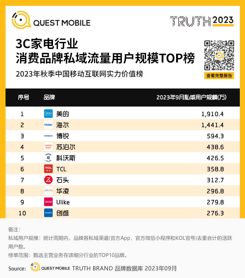 12、3C家电行业消费品牌私域流量用户规模TOP榜