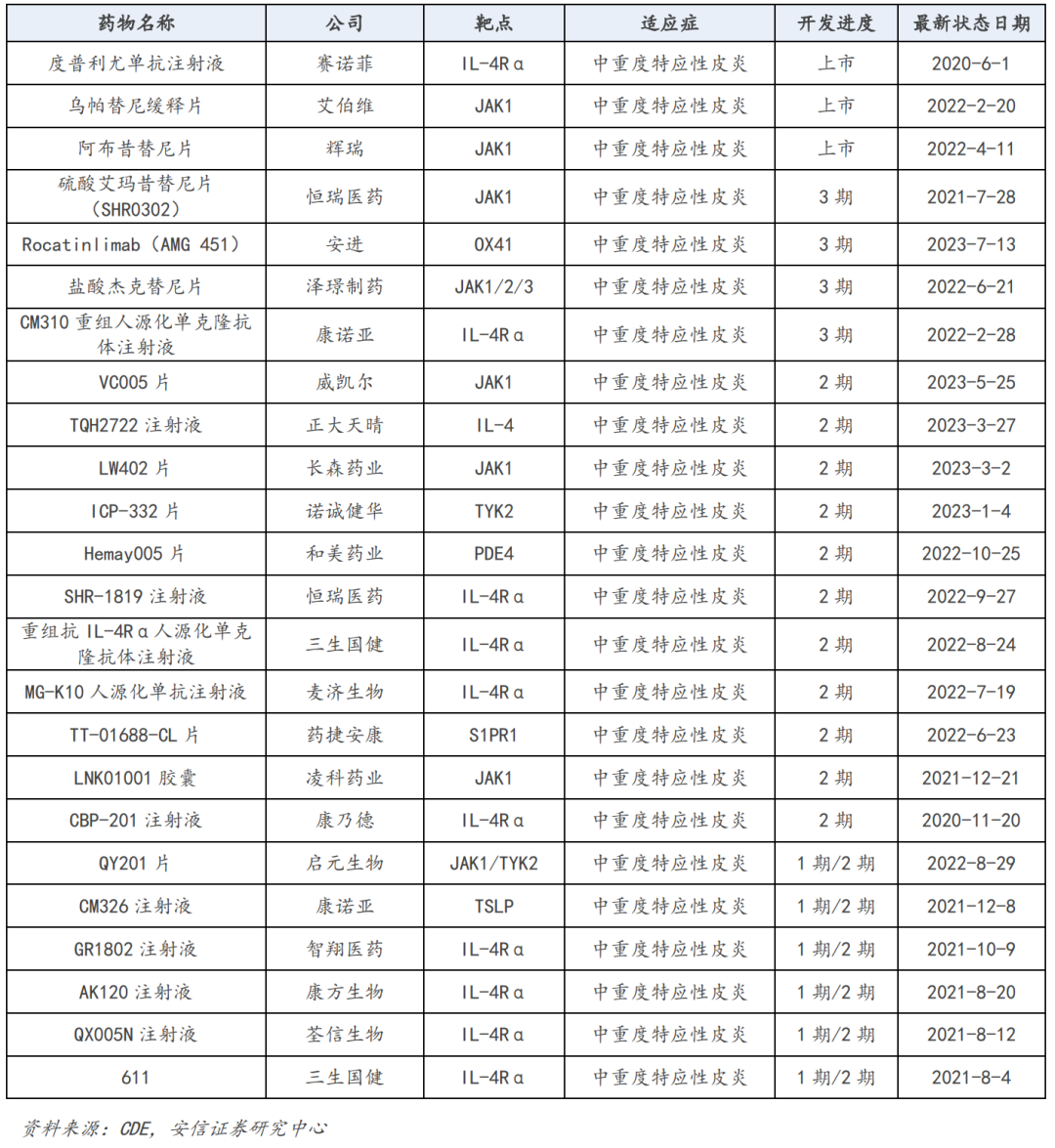 国内中重度特应性皮炎药物梳理