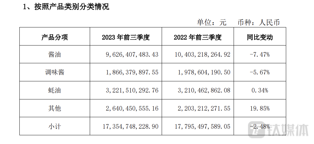 不过,公司的蚝油和其他产品的营收实现了增长,分别为32.21亿元、26.4亿元,同比增加了0.34%、19.85%。对于公司其他业务增长,业内人士认为主要归功于醋及料酒两类产品。