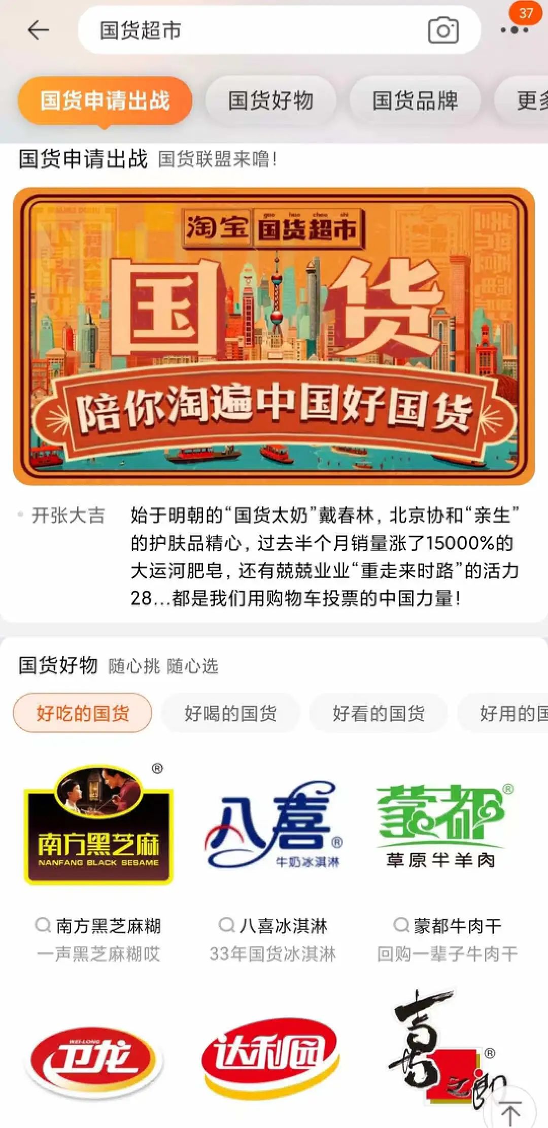 一个月前,淘宝上线“国货超市”,其中包括日用护肤、美妆、食品、服饰等各个品类的国货。