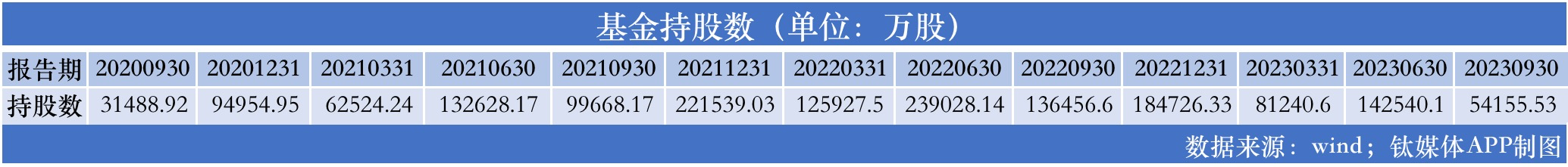 今年一季度,基金们曾一度携手大撤离,持股数降至8.12亿股,但随着锂价反弹,基金再度加仓,Q2末增加至14.25亿股;Q3行情再度急转直下,基金纷纷大撤离。