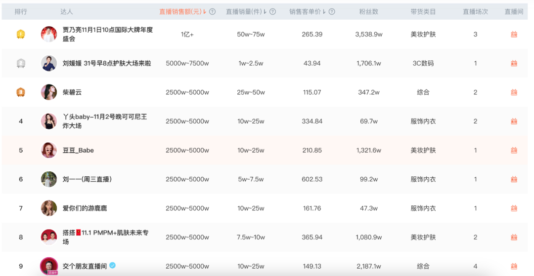 据第三方数据平台蝉魔方显示,今年双十一,抖音中出现了大量的“粉丝量与销售额不完全挂钩”的情况,少粉丝量依然可以上榜甚至冲刺TOP1。