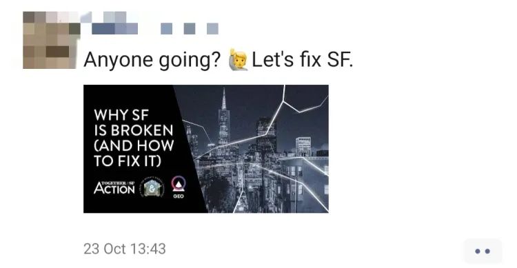 看起来像是个召集民众一起探讨旧金山城市问题和解决方案的公益活动。