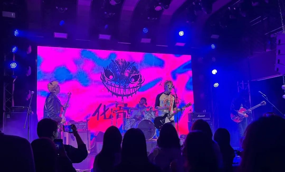 10月27日晚,在北京五棵松的MAO Livehouse里,一位主唱把自己扮成鬼的模样,在舞台上火力全开,台下的听众人手一杯啤酒饮料,响应着台上的节奏左右摇摆。