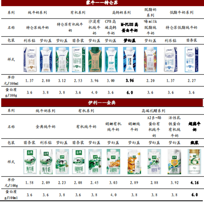 蒙牛特仑苏和伊利金典的高端产品差异化布局 来源:万联证券研究所