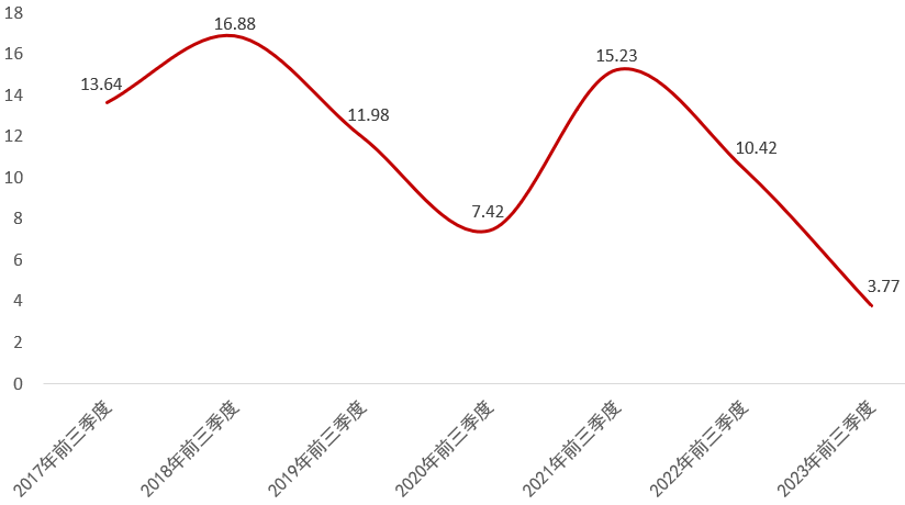 2017年前三季度至2023年前三季度伊利收入同比增长(单位:%) 来源:伊利财报,阿尔法工场整理