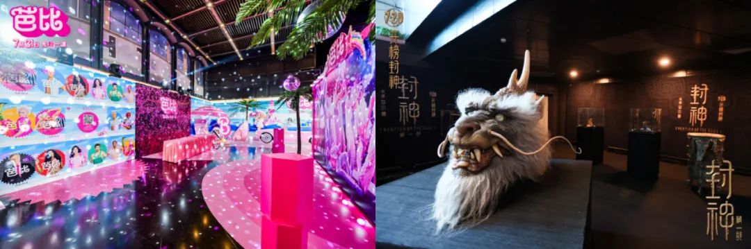 大多数电影首映礼都会在活动现场布置上花点心思:《芭比》直接涂粉,观众也穿上粉色元素的服饰,开启粉红派对;《封神第一部》则办起沉浸式展览,剧组的衣物和道具都拿到了首映礼现场,提前领略电影中精美的设计细节。