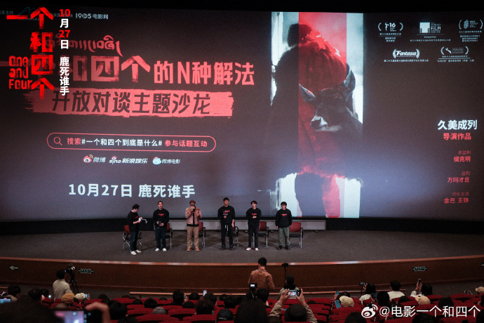 而近期上映的电影《一个和四个》则花了一些小心思,本片宣传口号为“荒野狼人杀”,突出在有限空间内推理出凶手的电影框架,于是在映后环节,主创现场玩卧底游戏,迅速拉动起现场互动氛围。