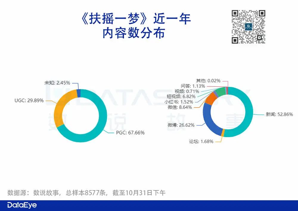 内容数方面:新闻和微博内容数量占据80%左右,以PGC内容为主;其次是在微信渠道,占比在8%左右。整体来看,项目组在微博、b站、小红书、抖音都有搭建社媒账号,但并未进行精细化运营。