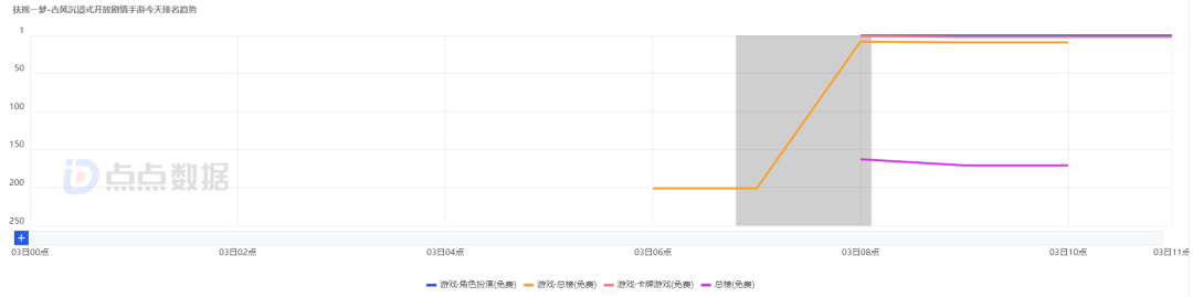 根据点点数据实时榜单显示,《扶摇一梦》上线目前位于iOS游戏免费榜第10名,暂未进入游戏畅销榜(截至11月3日中午11:30)。