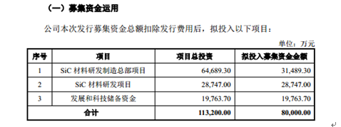 或许也是因为上述因素,志橙股份欲募集31489.3万元用于SiC材料研发制造总部项目,28747万元用于SiC材料研发项目,两者合计约为60236.3万元,占募资总额的75.3%。