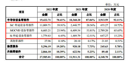 可见,SiC外延设备零部件已替代了MOCVD设备零部件,成为了志橙股份创收最高的产品。