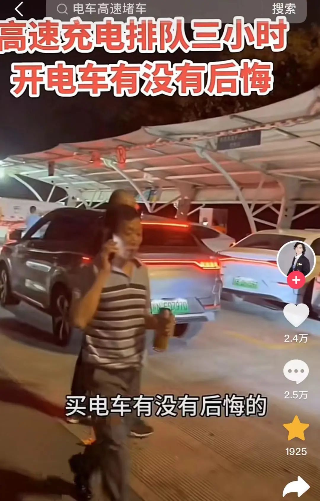 在国内,纯电车也遇到了一些问题,比如每到五一、十一这种节假日高速堵车的场景中,纯电车的充电续航的问题、后悔开电车上高速的声音就会出现。
