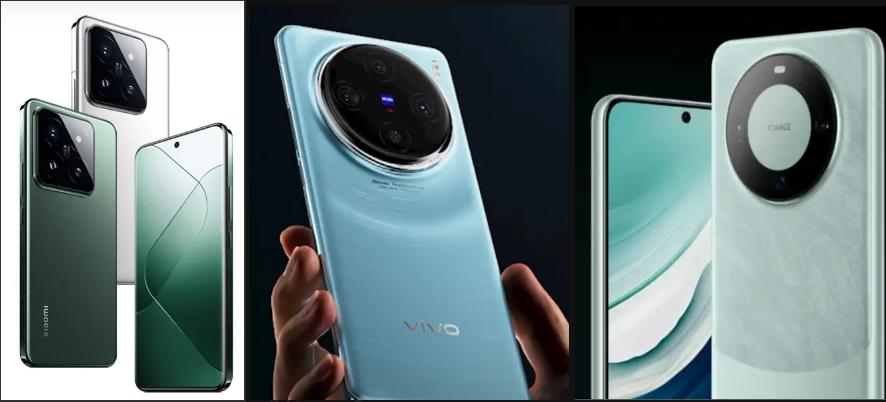 从左到右依次为小米14 pro、vivo x100、华为mate 60