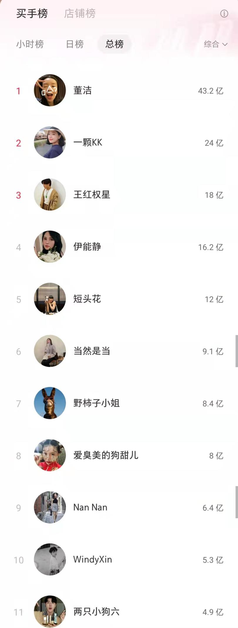 在小红书官方根据“成交金额、成交件数、观众停留时长、直播间互动率”综合测算的买手榜总榜中,热力值突破10亿的仅有5位“买手”。