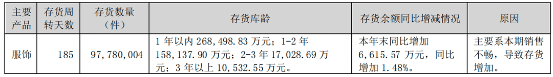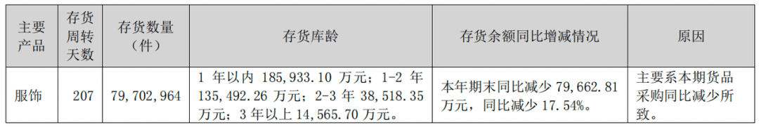 此外,公司的长库龄服装金额进一步增加,2-3年库龄服装金额增长至3.58亿元,3年以上库龄服装金额增长至1.46亿元。