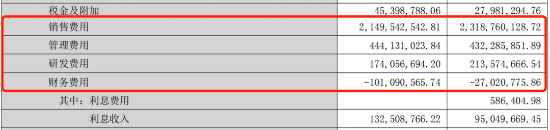 三季报显示,2023年前三季度,森马服饰的营业总成本为76.84亿元,较上年的82.94亿元减少了6.1亿元。其中,除了管理费用、财务费用外,公司的销售费用、研发费用均有所减少。