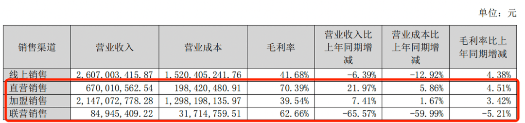 然而到了2022年末,公司减少至8140家门店,其中直营店723家,加盟店7336家,联营店81家。