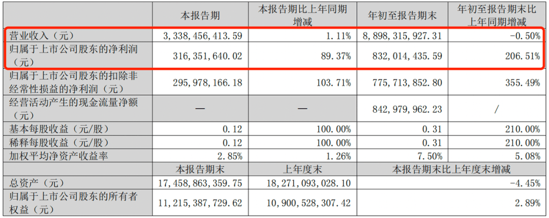 数据显示,2023年7月-9月,森马服饰实现营业收入33.38亿元,较上年同期增长1.11%;归母净利润3.16亿元,较上年同期增长89.37%。