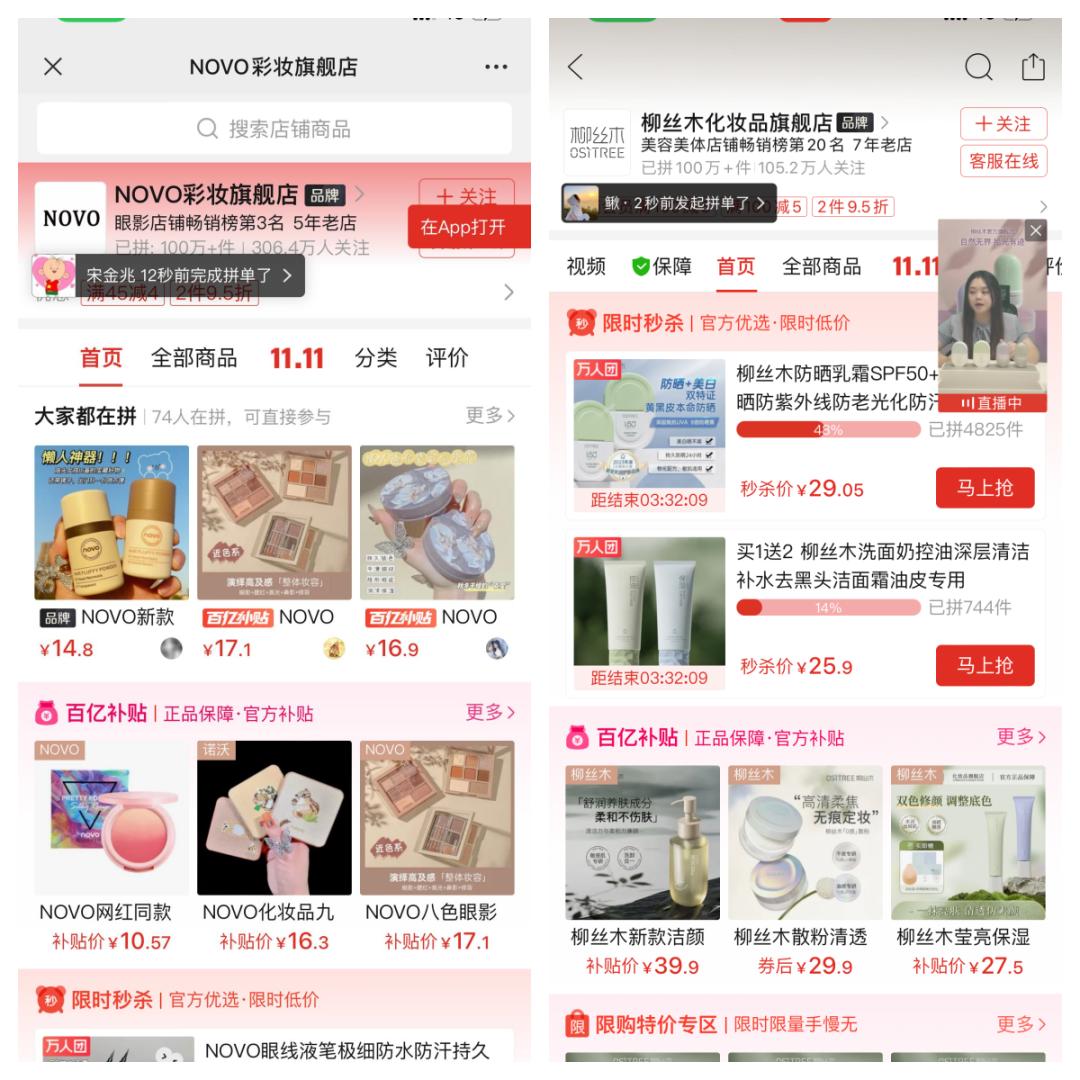 而在双11大促开始后,国货美妆成为入驻拼多多百亿补贴数量最多的类目,多个国货美妆品牌销量增长显著,部分热销单品销量增长超过20倍。